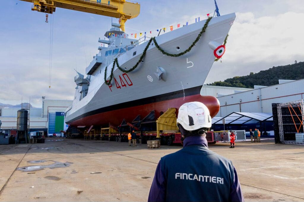 Fincantieri launched the Ugolino Vivaldi (P 440) on February 21 at its historic Riva Trigoso shipyard on the Ligurian coast, marking the first of four next-generation offshore patrol vessels ordered by the Italian Navy under a contract awarded to Orizzonte Sistemi Navali — the joint venture between Fincantieri (51%) and Leonardo (49%) established to deliver Italy’s most complex naval programs. The ceremony marks the transition from a construction project into a functioning hull, with delivery to the Marina Militare scheduled for 2027 and the remaining three sister vessels to follow at intervals thereafter.